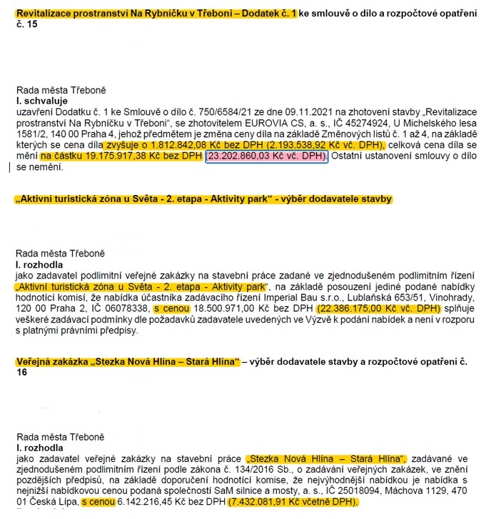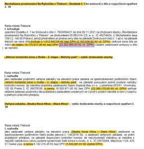 Revitalizace prostranství Na Rybníčku v Třeboni se prodražuje. Cena se vyšplhala na více než 23,2 mil. Kč vč. DPH, tj. včetně dodatku č. 1 ve výši přes 2,1 mil. Kč vč. DPH.
