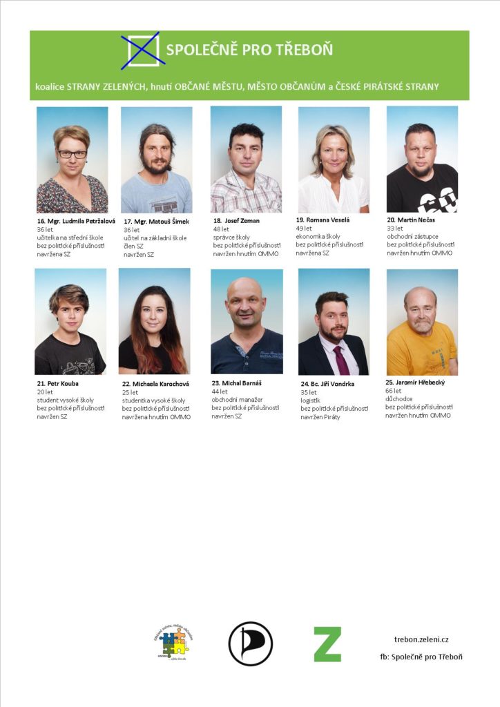 Společně pro Třeboň – koalice STRANY ZELENÝCH, hnutí OBČANÉ MĚSTU, MĚSTO OBČANŮM a ČESKÉ PIRÁTSKÉ STRANY