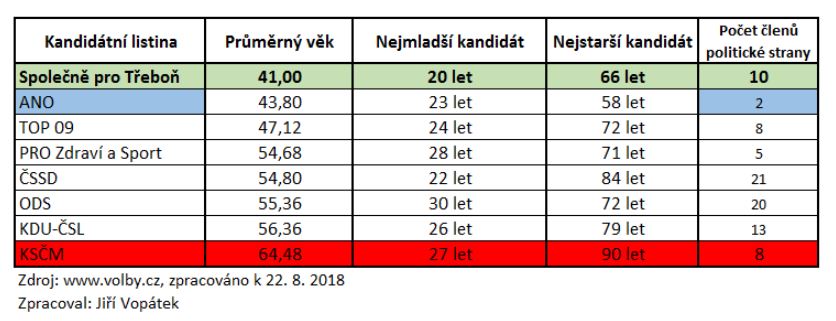 22.8. 2018 Český statistický úřad zveřejnil jednotlivé kandidátky (www.volby.cz). Prohlédnout si je můžete zde – Třeboň: